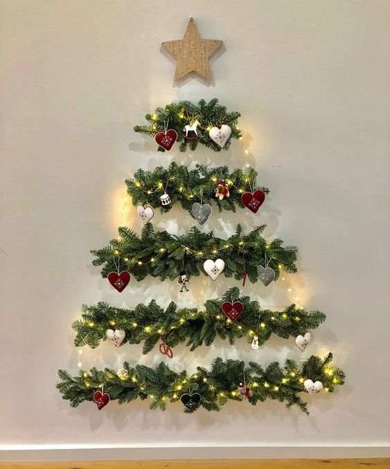 – Árvore de luzes na parede: utilize um pisca para desejar uma árvore e coloque junto alguns enfeites.