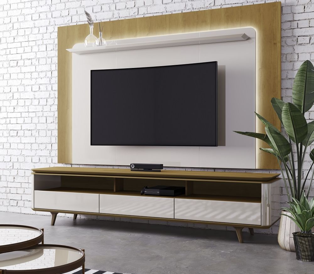 Os homes com painel são bastante versáteis e oferecem um design moderno. Eles consistem em uma estrutura para acomodar a televisão e podem conter prateleiras ou gavetas adicionais. Esse modelo é ideal para quem deseja uma composição mais clean e organizada.