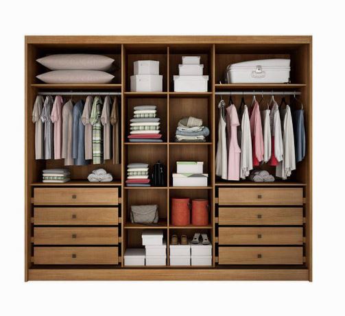 100% em mdf, possui portas ripadas, espelho com película de segurança, colunado em 25 mm, trilho inferior em alumínio e roldanas com amortecedores.