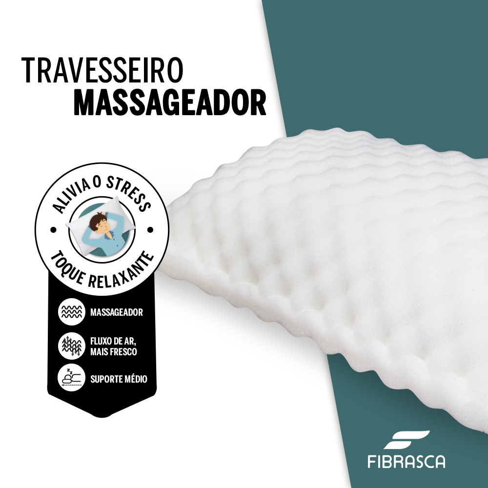 Desenvolvido com desenho especial, trazendo uma solução com maior sensação de conforto e alívio do stress do dia a dia. Possui gomos massageadores que estimulam a circulação sanguínea. A capa é feita em malha com toque suave e confortável.